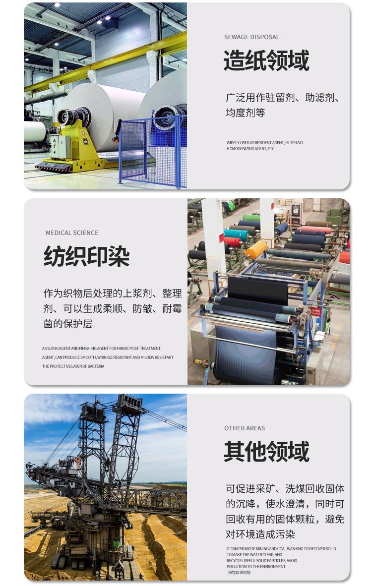 PAM陽(yáng)離子高分子化合物,具有多種活潑的基團(tuán)。與多種物質(zhì)親和,吸附。常用于 城市污泥 造紙廠污泥 等工業(yè)污泥脫水處理中。