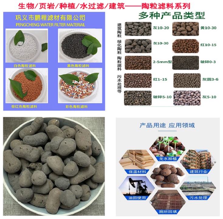 陶粒多由黏土或頁巖成型經高溫處理所得,表面粗,內部多孔,有較大的比表面織,有利于生物的附著生長制陶粒的原村料范圍不斷擴大,粉煤灰、底泥、污泥高爐渣、垃圾等各種固體廢棄物用于燒制陶粒作為濕地填料,富含鈣、鐵、鋁等元素;能與污水中的磷酸鹽形成不溶性沉底,有利于氮確的去除;
